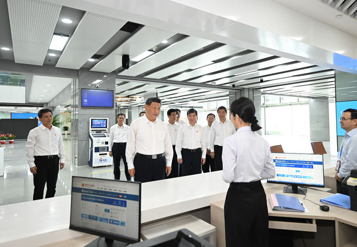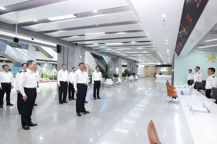 10月15日至16日,中共中央總書記、國家主席、中央軍委主席習(xí)近平在福建考察。這是16日上午,習(xí)近平在中國(福建)自由貿(mào)易試驗(yàn)區(qū)廈門片區(qū)考察時,同綜合服務(wù)大廳窗口工作人員親切交流。新華社記者 燕雁 攝