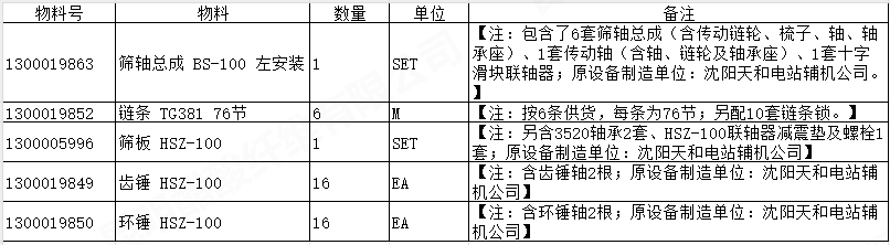 1.1采購項(xiàng)目名稱: 篩軸總成(左裝)等5項(xiàng)